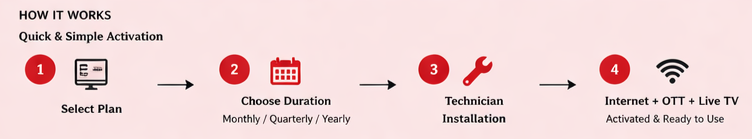 All plans include FREE installation • Router FREE on yearly plans • OTT & Live TV available on eligible plans